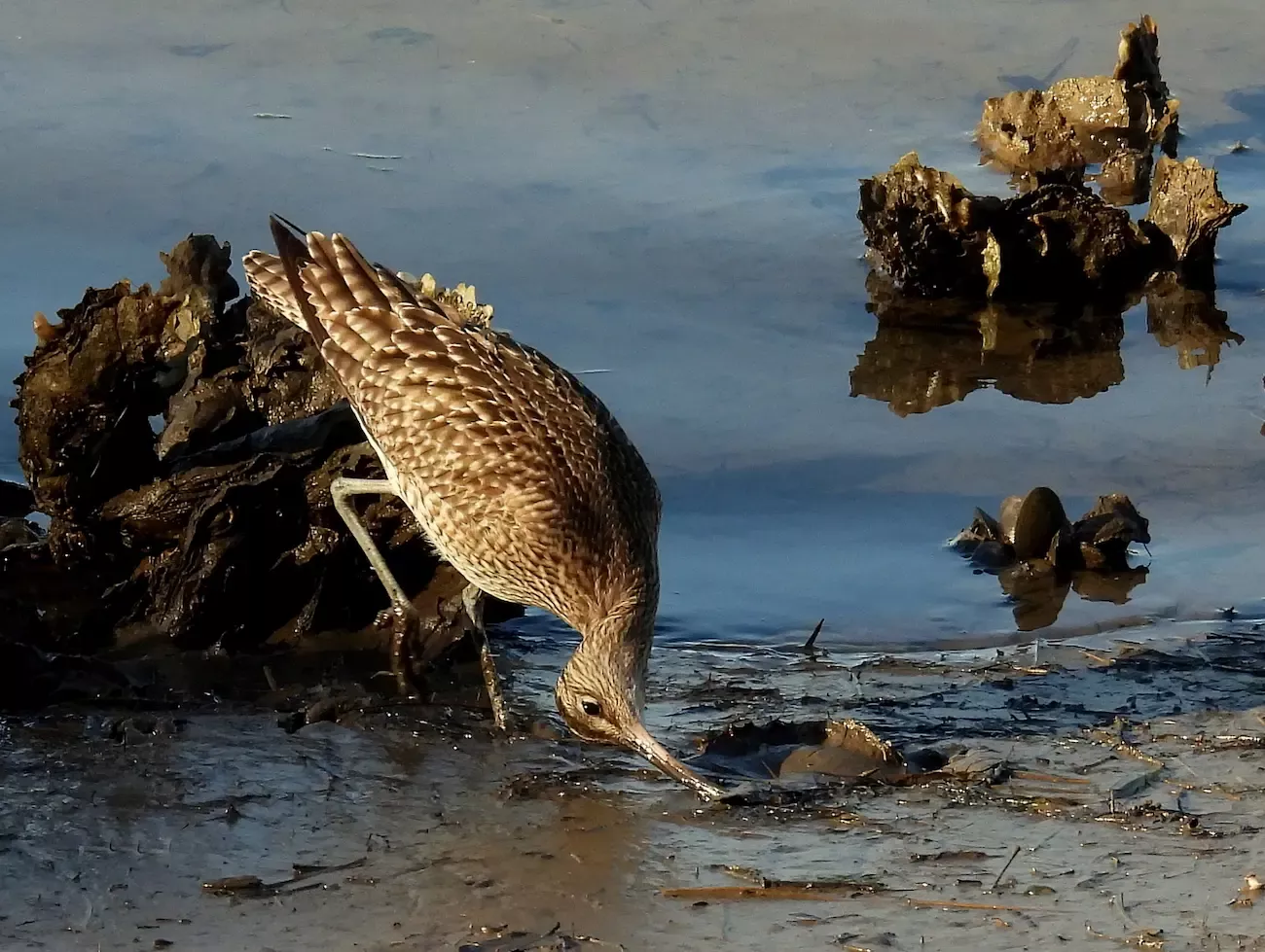 Curlew foraging in wetlands