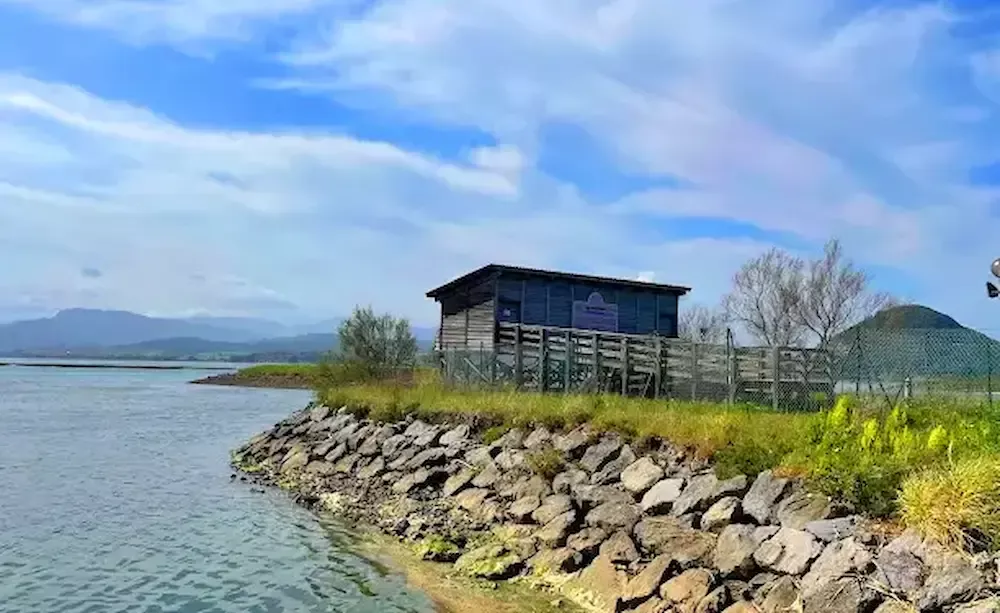 Observatorio de aves en el Parque Natural de las Marismas de Santoña, un punto estratégico para la observación de aves acuáticas y migratorias en Cantabria.
