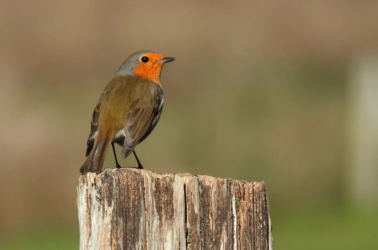 Petirrojo europeo posado sobre un poste en el entorno natural de las Marismas de Santoña en Cantabria