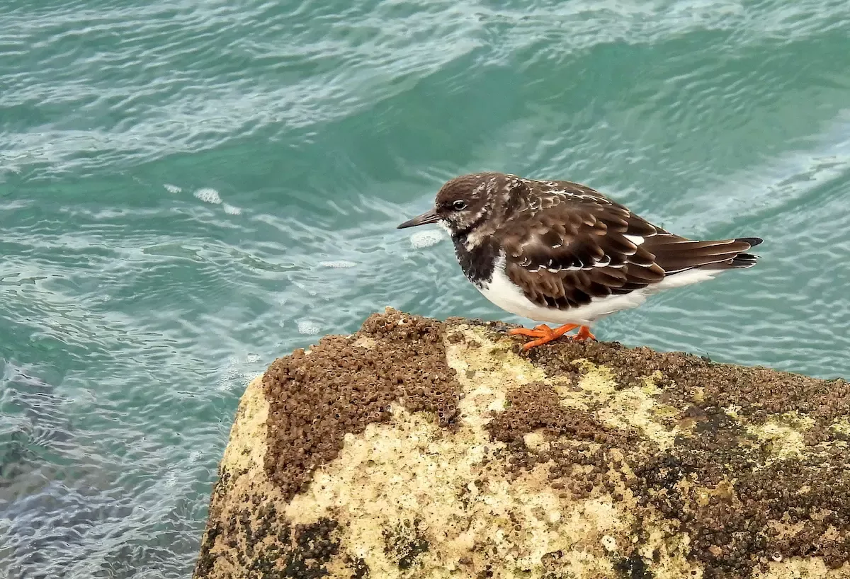 Vuelvepiedras común posado sobre una roca en el litoral cercano a las Marismas de Santoña en Cantabria